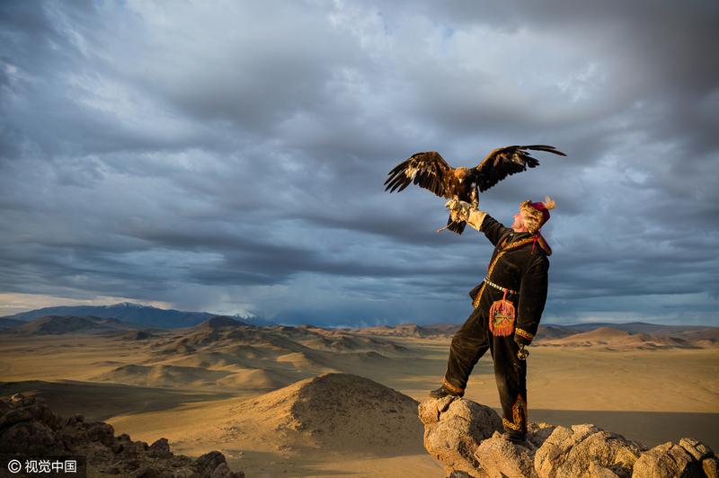 2017年1月21日讯,蒙古阿尔泰山脉,摄影师JoelSantos实拍蒙古游牧民族猎鹰。通常,这些游牧人培养与猎鹰之间的默契度,训练猎鹰为他们捕捉猎物。训鹰的传统在蒙古草原上代代相传,是这种技艺开始变的越来越少越来越珍贵。barcroftmedia/视觉中国
