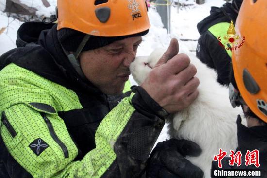 当地时间1月23日,意大利救援人员在被雪掩埋的酒店附近找到三只被埋的狗宝宝。三个呆萌小家伙的获救让工作人员喜出望外,热情地对它们又抱又亲。意大利中部的一处滑雪度假酒店当地时间1月18日遭到雪崩掩埋,造成宾馆内超30人失踪。