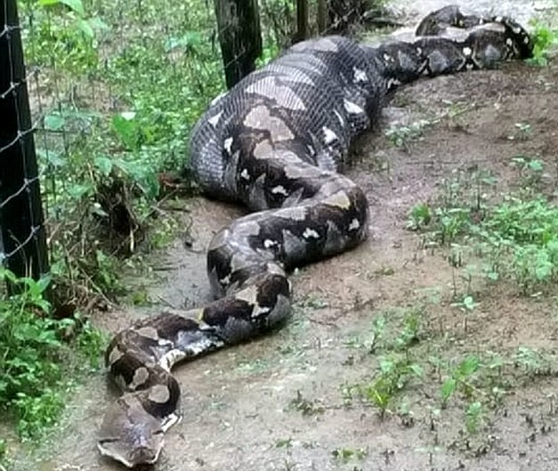 马来西亚巨蟒吞食两只羊 身体臃肿难移动
