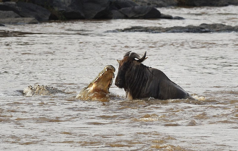 鳄鱼水中猎食角马