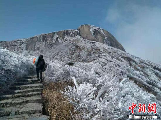 2月9日上午,福建金饶山迎来2017年首场雾凇景观,放眼望去,整片山头白茫茫一片,犹如一幅美丽的画卷。金饶山位于福建三明建宁县闽江源生态旅游区内,素有“秀起东南第一巅”的美誉,海拔1858米,是福建省境内的第一高峰。受高海拔和冷空气的影响,每年冬季金饶山上都会呈现“绝美”的雾凇景观。建旅摄