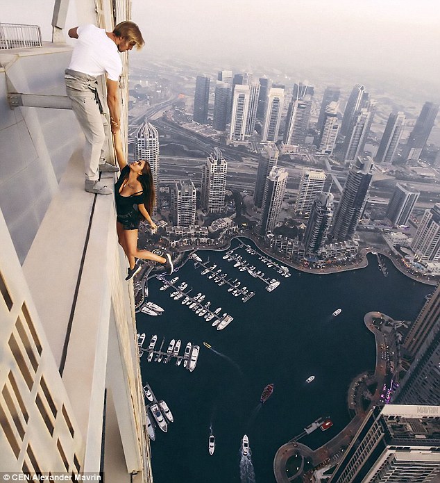 据英国《每日邮报》2月15日报道,这是一个惊心动魄的时刻:23岁的俄罗斯模特Viki Odintcova为了拍摄一张完美的照片,爬上世界最高的摩天大楼,在1004英尺(约306米)的楼顶。她仅仅靠抓住一名男助理的手保证自己不摔下去。