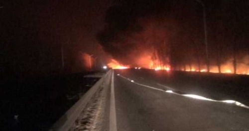 2月19日早上5点左右,在山东济阳220国道,一辆载有33吨柴油的油罐车和一辆铲车追尾,柴油泄露并起火,造成大约200平米流淌火。