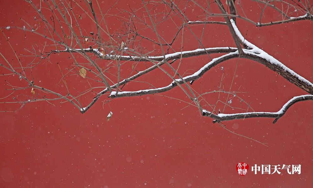 21日,北京迎来这个冬天最明显的一场降雪,城市瞬间被染成了白色。图为北海红墙外的雪景(摄影:关禺)