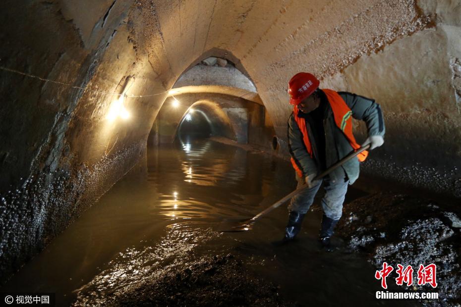 2017年2月23日,山东省青岛市,安徽路雨水排水暗渠内。1898年德国侵占青岛,开始进行城市排水管网建设,至1905年初具规模,以后逐渐向北延伸。