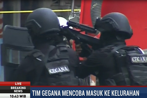 印尼万隆政府大楼爆炸 警方与袭击者交火现场
