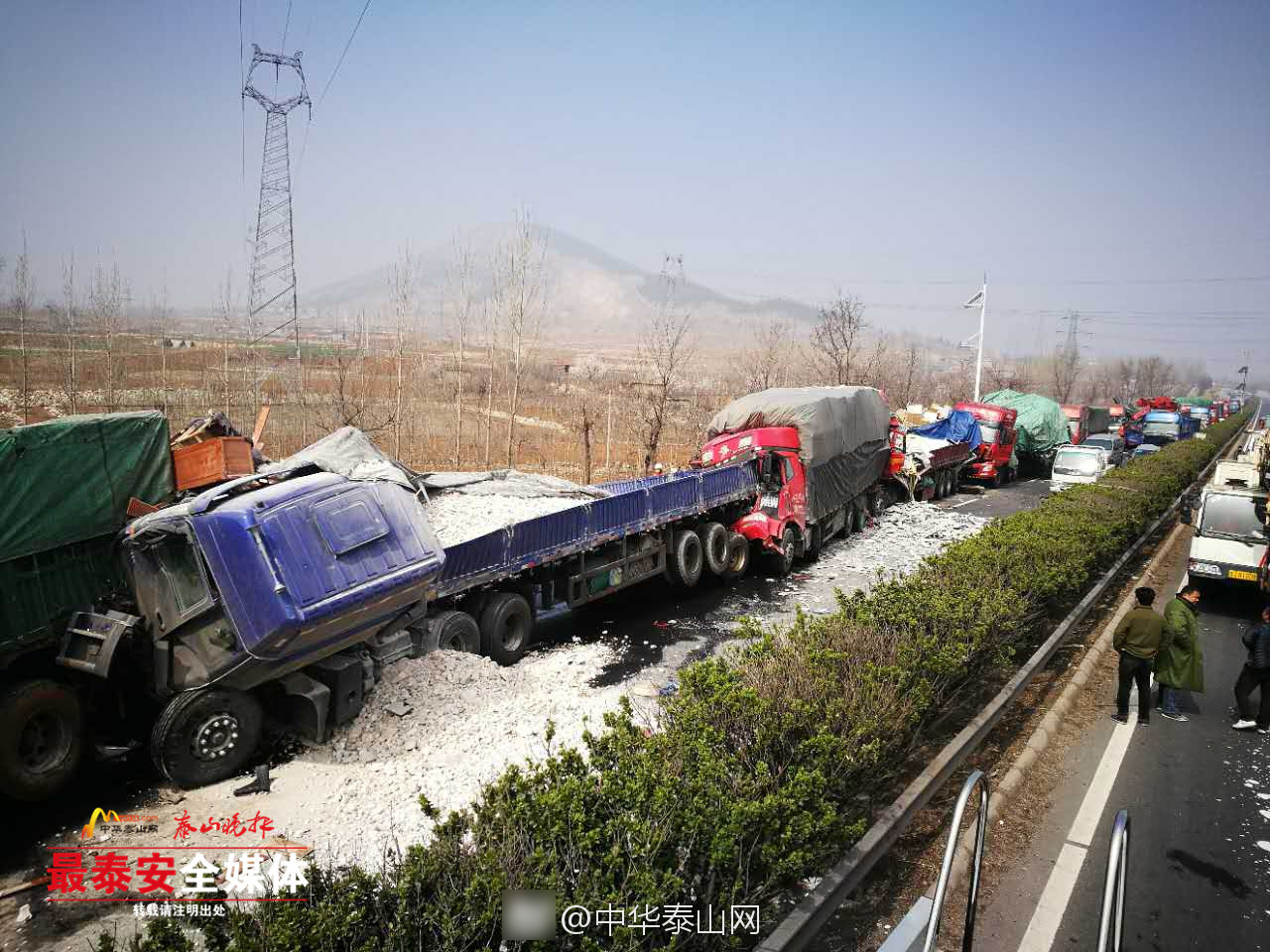 2017年3月29日早晨6时50分左右,泰新高速56一77km路段突发团雾,至7时4分左右,该路段临沂方向相继发生5起交通事故,涉及车辆22辆,其中大货车20辆,小货车2辆。