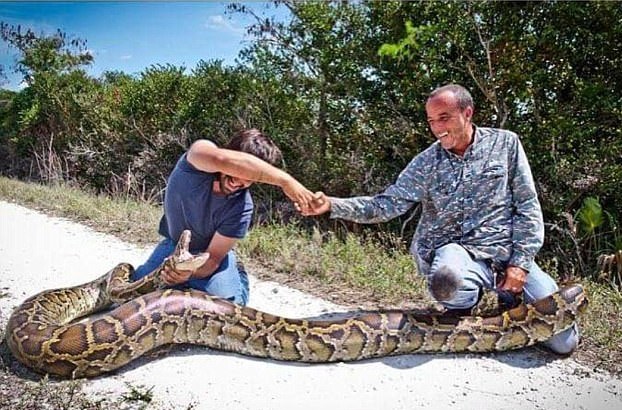 美国“灭蛇计划”:捕蛇人捕获4.5米长64千克重巨蟒