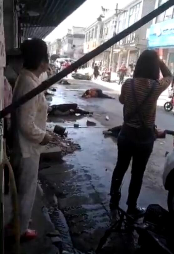 4月28日上午9时许,江苏宝应,安宜镇居民陆女士驾车行至县城泰南路时,与停在路边的搅拌车发生碰撞,后又与路边多名行人发生碰撞,造成多人受伤。来源:新华日报