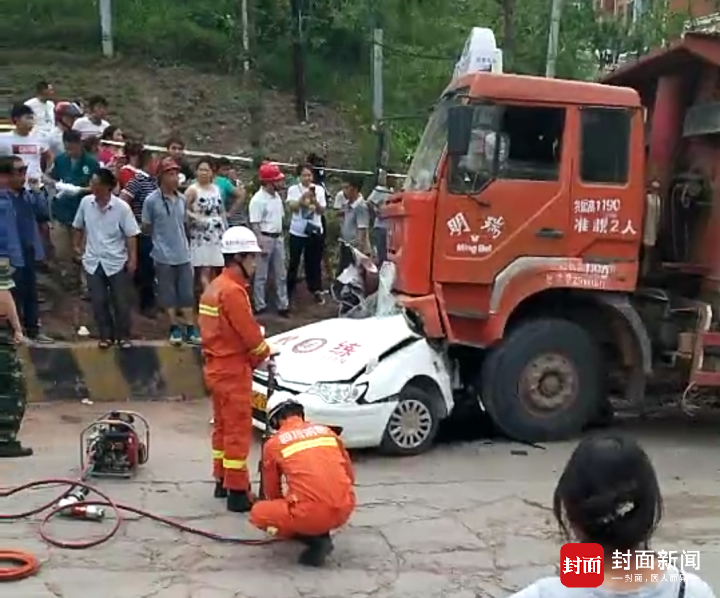 5月30日下午,四川达州莲花湖至凤凰山的公路上一教练车从路口左拐的过程中与一大卡车相撞,教练车的大部分车身被大卡车碾压变形。教练车上当时仅有驾驶员周某一人。来源:封面新闻