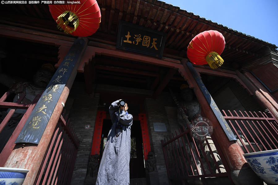 释延邦,少林第34代弟子,师承少林寺方丈释永信,也是嵩山少林寺接管资寿寺以来,最年轻的住持,年仅28岁。延邦自幼在少林寺生活,13岁跟随少林武僧团旅居海外,2011年回国后求得具足戒。他不仅精通佛法、擅长禅茶之道,懂古琴、懂书画,还懂管理学,对摄影更是非常痴迷,力求通过摄影以心包太虚量周沙界,他被居士们称为“潮僧”。图文:山西新闻网 刘昱 摄