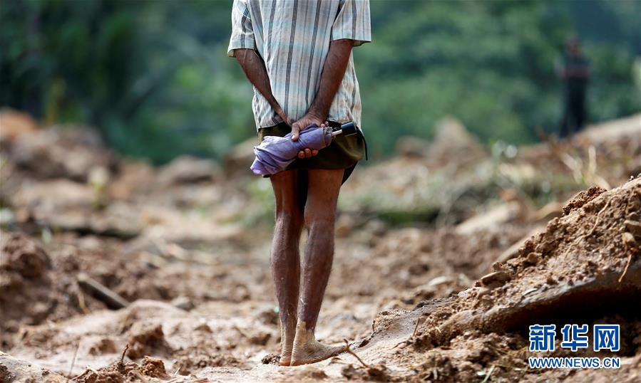 5月28日,在斯里兰卡卡卢特勒的一个受灾村庄,一名男子站在废墟旁。