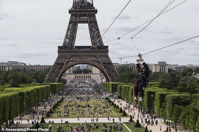 据英国《每日邮报》6月6日报道,法国巴黎著名地标埃菲尔铁塔二楼安装了高空滑索,体验者可在距离地面115米上空疾驰。报道指出,体验者可感受网球手打出网球的速度。