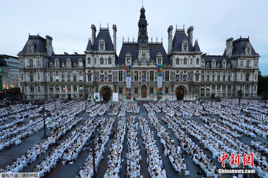 当地时间2017年6月8日,法国巴黎,第29届“白色晚餐”活动举行,这项活动在巴黎兴起,至今已有20年历史。每年全球有超过20个城市举办此项活动,举行地点保密到家,最后一刻才会揭晓。