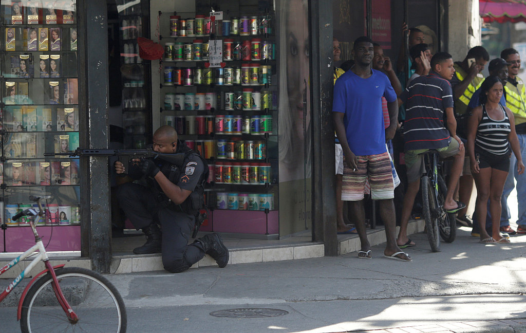 当地时间6月12日,巴西里约热内卢,当地警方在贫民窟进行缉毒行动时,与毒贩发生枪战引民众围观。文字来源:中新网 供图:视觉中国