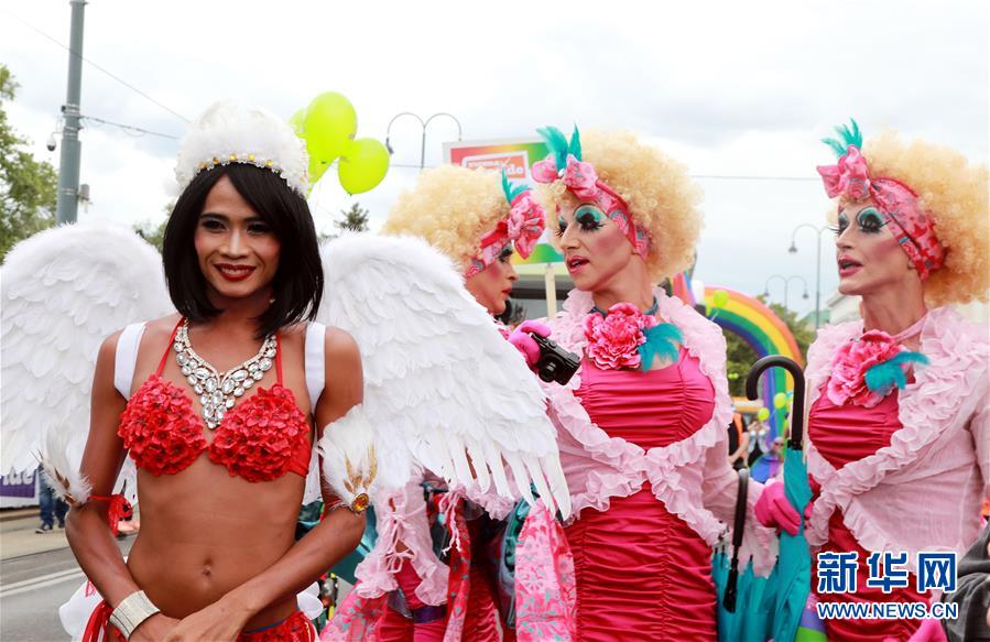 6月17日,在奥地利维也纳,参加“彩虹大游行”的人们准备出发。当日,约10万人走上维也纳街头,参加2017年“彩虹大游行”。“彩虹大游行”是维也纳市内参加人数较多的年度游行,今年的口号是“多样的色彩、同一个社区”。新华社记者 潘旭 摄