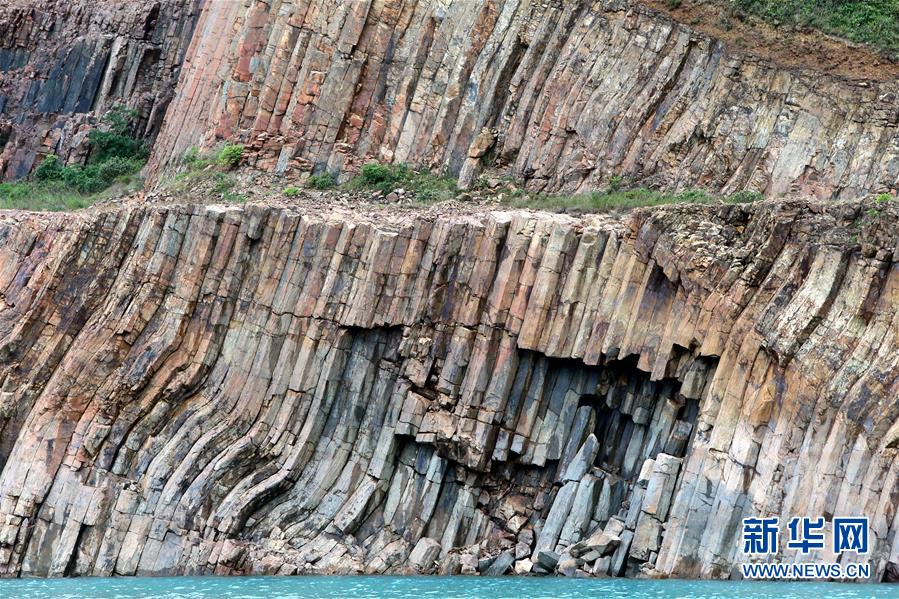 这是香港联合国教科文组织世界地质公园糧船湾景区的六角形火山岩柱景观(6月16日摄)。香港联合国教科文组织世界地质公园面积约50平方公里,共有8个景区,结聚于两个园区内。其中4个位于西贡火山岩园区,园区以六角形酸性火山岩柱为特色;余下4个景区位于新界东北沉积岩园区,园区展现了香港最完整的沉积地层。地质公园于2009年取得国家地质公园的资格,2011年成为世界地质公园网络成员并正式更名为“中国香港世界地质公园”,与黄山、韩国济州岛等80多个世界级地质公园齐名。2015年,地质公园接受4年一度的评估,得以继续成为世界地质公园网络成员。同年,更名为“香港联合国教科文组织世界地质公园”。目前,地质公园已成为香港市民及游客最受欢迎的旅游目的地之一。新华社记者 李鹏 摄