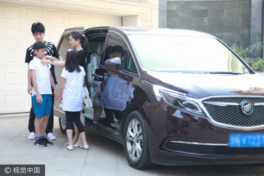 父亲节前夕,张艺谋妻子陈婷带着三个儿女亮相某住宅区,16岁的大儿子已经比妈妈还高出半个头帅气挺拔,二儿子和小女儿穿着白T恤短裤,装扮朴素学生味十足,女儿头上别着粉色蝴蝶结童真可爱。(图文/视觉中国)