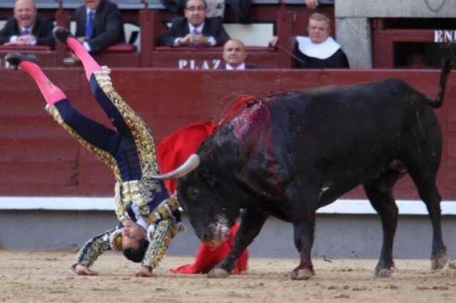 西班牙一名斗牛士凡迪尼奥(Ivan Fandino)6月17日在法国西南部斗牛时意外绊倒,被牛刺伤后送医不治。综合媒体报道,在法国城镇蒙德马桑的一场庆祝斗牛节的表演中,36岁的斗牛士凡迪尼奥被自己的斗篷绊倒在地,随即被满身鲜血的猛牛撞飞。倒地时,牛用角刺向他胸部,把他的肺刺穿。