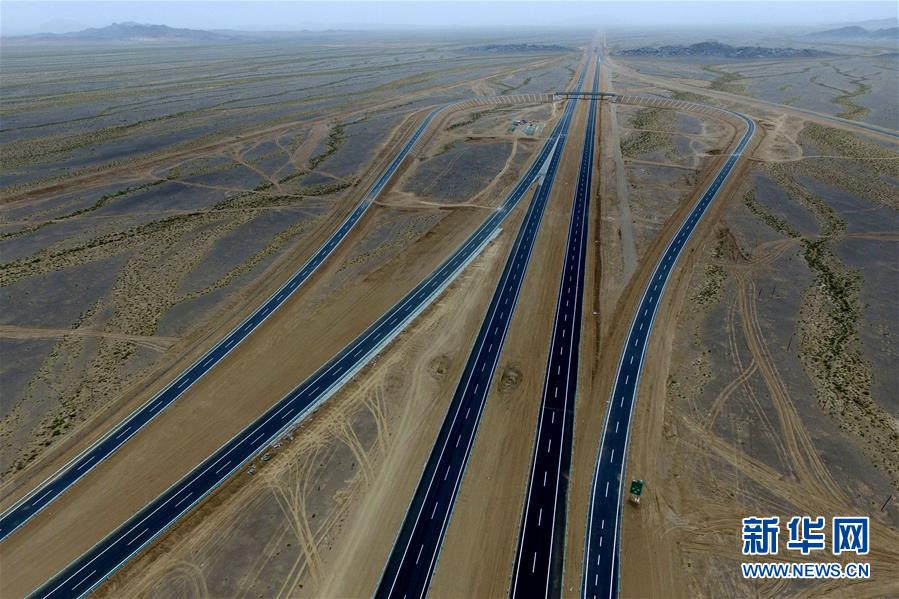 这是6月18日拍摄的京新高速公路新疆哈密境内路段。目前,京(北京)新(新疆)高速公路新疆哈密至甘肃明水段贯通,主体工程已完工,附属设施正陆续完成。据工程施工方介绍,该段高速公路预计6月底通车。京新高速公路是国家高速公路网规划的重要干线,它将使新疆至北京的公路里程缩短1000多公里。 新华社发(蔡增乐 摄)