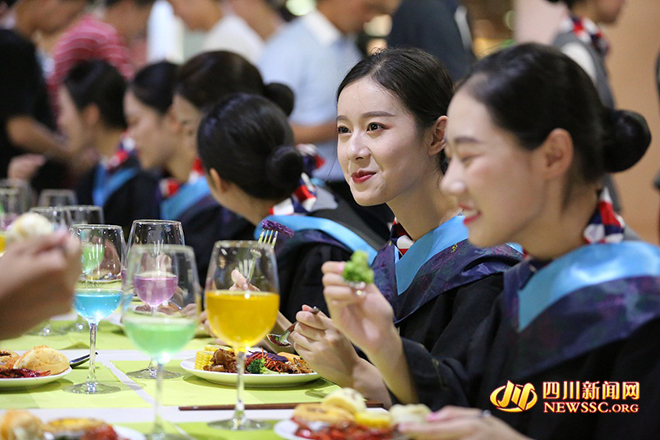 “毕业典礼后请同学们到餐厅吃免费星级自助大餐。”6月23日中午,四川西南航空职业学院就为毕业生们倾情准备了一顿的奢华星级自助大餐,用一种最暖胃、暖心的方式送别毕业生。