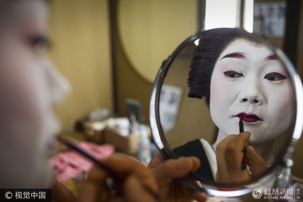 6月29日报道,日本艺伎(Geisha)产生于17世纪的东京和大阪。最初的艺伎全部是男性,游走在京町界外,俗称町伎,主要在妓院和娱乐场所以表演舞蹈和乐器为生。18世纪中叶,艺伎职业渐渐被女性完全取代,这一传统也一直沿袭至今。图为当地时间2012年10月10日,日本京都,一名艺妓正在给自己化妆。