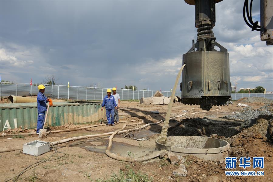 6月30日,在哈萨克斯坦阿斯塔纳轻轨项目一期工程的一座车站,钻机在钻孔施工。 建设中的阿斯塔纳轻轨是哈萨克斯坦首条城市轻轨。一期工程线路总长约22公里,沿途设18座车站,设计时速80公里。项目采用中国规范设计施工并由中国企业承建。目前,中建六局、中铁二局和北京城建正在不同标段开展建设。 新华社发(奥斯帕诺夫 摄)