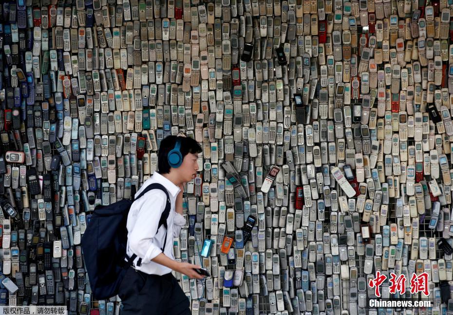 东京一店铺在墙上挂满老式手机