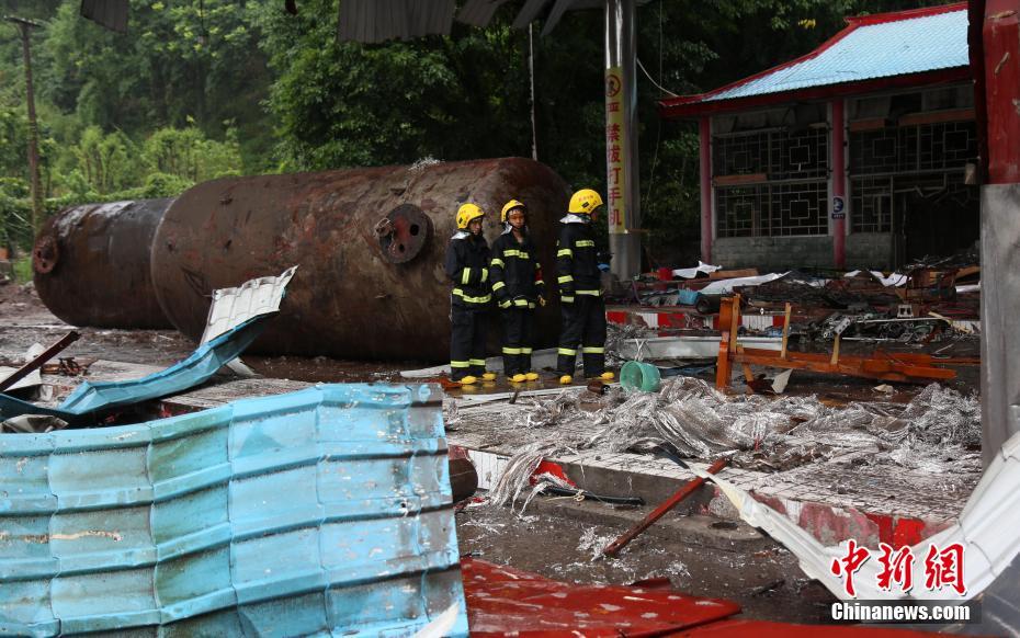 7月6日,在四川达州市公共汽车总公司通川区塔坨原加油加气站,工作人员在对废弃设施拆除施工过程中,一个油罐发生爆炸。事故造成1人死亡、2人受伤(轻伤)。中新社记者 任康友 摄