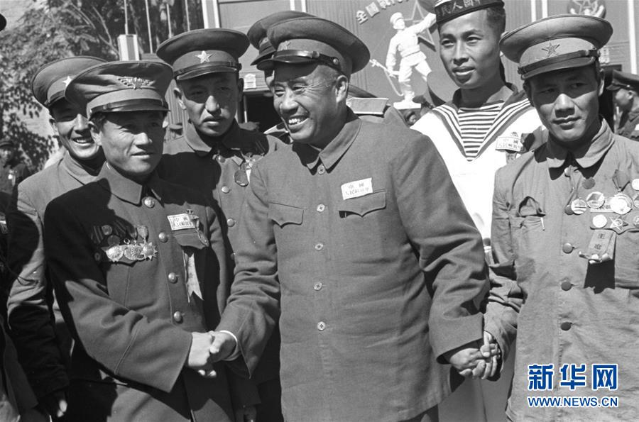 1950年9月,朱德同志和出席全国战斗英雄代表会议的中国人民解放军陆、海、空三军英雄模范在一起。 “新中国成立仅仅一年之后,就在北京隆重召开了全国战斗英雄大会,充分表明我党我军对英雄的重视和尊敬。”67年前,曾在战场上出生入死、屡立功勋的连长张学安,光荣出席了第一次全国战斗英雄代表会议。 新华社发