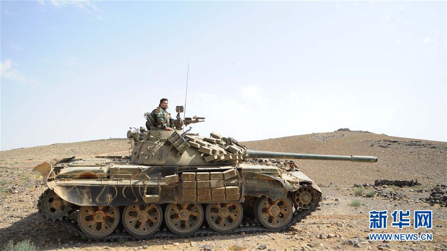 7月11日,在叙利亚南部苏韦达省打击极端组织“伊斯兰国”前线,叙政府军士兵在坦克上瞭望。 叙利亚军方10日在叙南部苏韦达省夺取多个极端组织“伊斯兰国”据点,反恐行动取得“战略性进展”。11日,新华社记者跟随叙利亚政府军探访了打击极端组织前线。 新华社发(阿马尔摄)