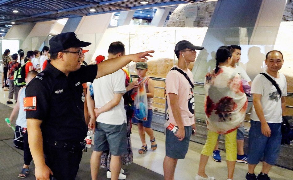 2017年7月18日,杭州,刚被清理过的雷峰塔遗址内很快就又堆起了硬币和纸币。近年来,由于游客扔硬币祈福的现象屡禁不止,雷峰塔遗址已被硬币覆盖成“钱山”,每月都需管理部门的清理才能维持原貌。