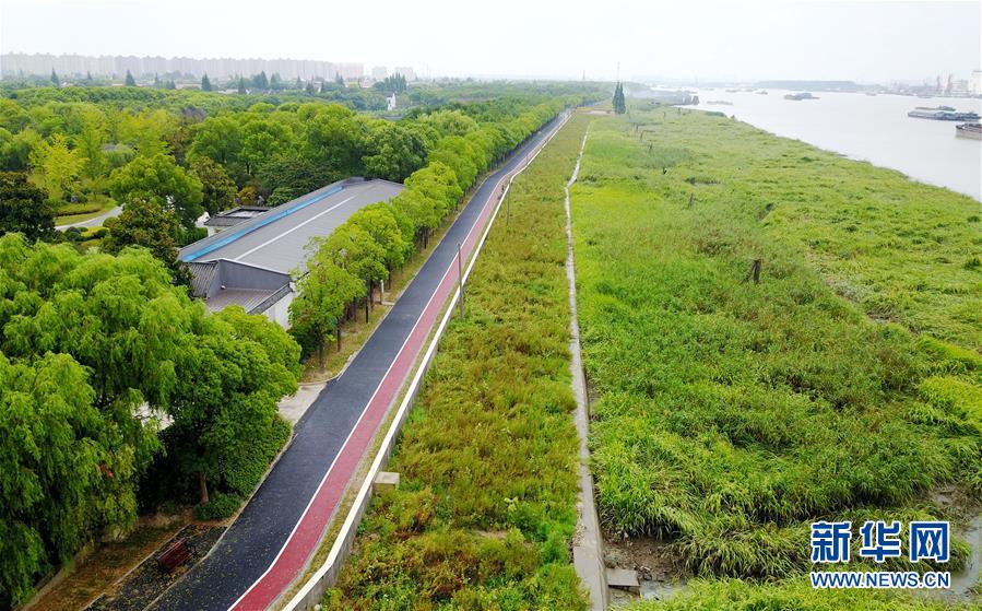浦江郊野公园滨江漫步区内的滨江步道(7月29日摄)。 当日,位于上海市闵行区的浦江郊野公园一期5.82平方公里区域开始试运营,这也是上海7个先行试点建设的郊野公园之一。浦江郊野公园一期园区包含活力森林区、奇迹花园区、柳鹭田园区、森林游憩区和滨江漫步区5大主题片区,兼顾“林、花、农、岸、水”5个主题风貌,园区内包含有4公里滨江观景道以及26公里郊野自行车道和22公里半程马拉松道,市民可选择步行或骑行方式游览不同的线路。 新华社记者方喆摄
