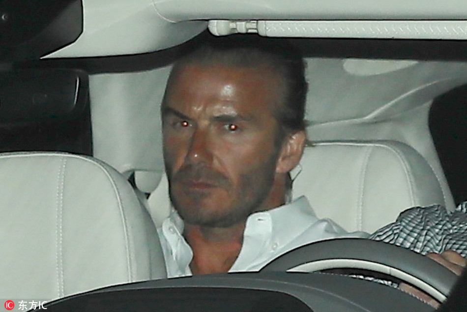 当地时间2017年7月29日,美国加州,大卫·贝克汉姆(David Beckham)与老婆维多利亚(Victoria Beckham)外出,两人表情凝重,心事重重零交流。