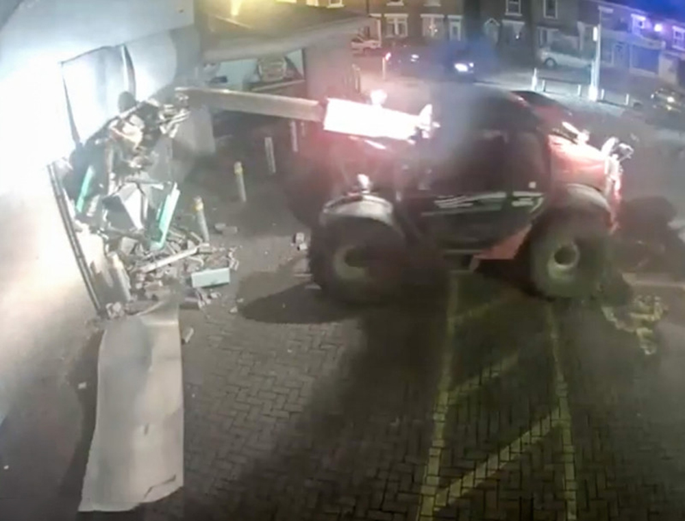 小偷为偷ATM机 开挖掘机拆掉整面墙