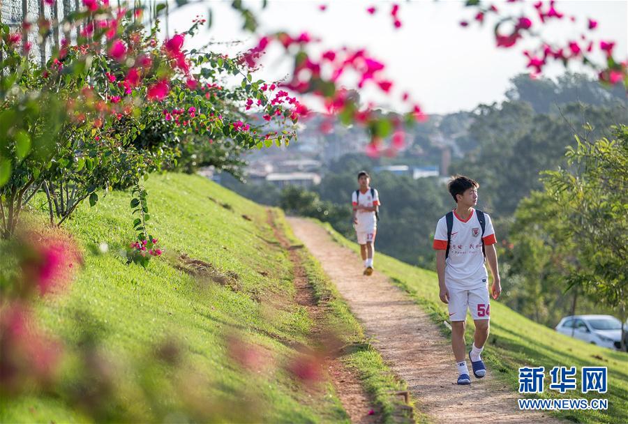 金砖国家体育事业发展各具特色,金砖国家间的体育交流形式多样,发展迅速。中国与巴西之间的体育交流,让人印象最为深刻的莫过于足球领域的合作。2014年7月15日,山东鲁能在巴西圣保罗州费利斯港市成立了中国足球首个海外青训基地——鲁能巴西体育中心。该中心之前的主人是“巴西体育中心俱乐部”,这家专注于青训的俱乐部在巴西非常有名。基地建立初期,山东鲁能主要从国内选拔14到18岁的优秀球员来到基地进行短期集训。2017年伊始,鲁能青训新型国际化战略迈出重要一步,一支鲁能16岁以下(U16)梯队整队在巴西体育中心展开为期九个月的培训。这支U16队伍采用五人轮换制与巴西同龄球员混合训练的模式,为队员们提供更加优质的竞技平台和足球氛围。 这是6月8日,在巴西圣保罗州费利斯港市鲁能巴西体育中心,山东鲁能U14队球员何文前往训练场。 新华社记者李明摄