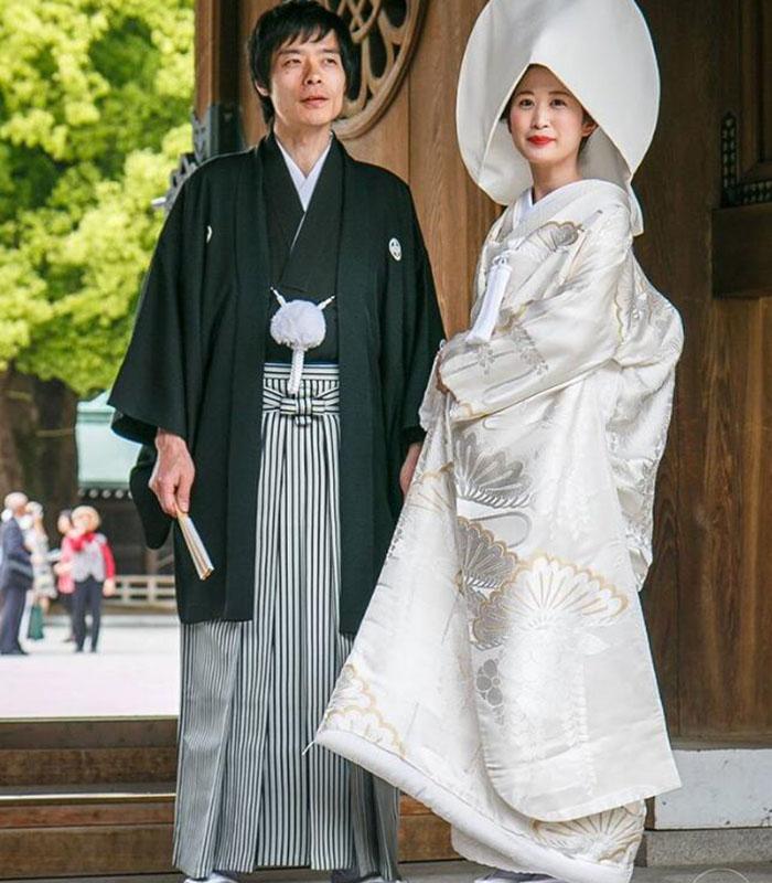在日本的婚礼上,新娘在整个仪式上经常穿两件以上的衣服,白色和红色。