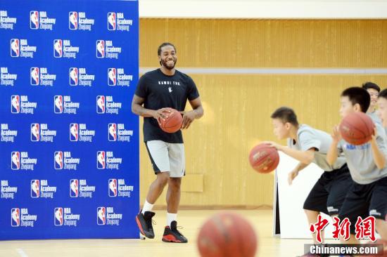8月22日,马刺球员科怀·伦纳德首次到访浙江诸暨的NBA精英训练中心,为青少年球员面授技艺。NBA(美国男子职业篮球联赛简称)于去年11月在浙江、山东和新疆开设了三家精英训练中心,旨在培育中国的顶尖青少年球员。 中新社记者 官方供图 摄