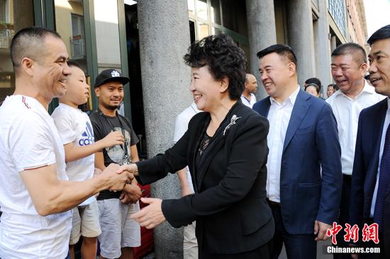 当地时间8月24日,中国国务院侨务办公室主任裘援平率团访问意大利,看望当地华侨华人。图为裘援平当天走访米兰华人街时同当地华人商户交流。 中新社记者 彭大伟 摄