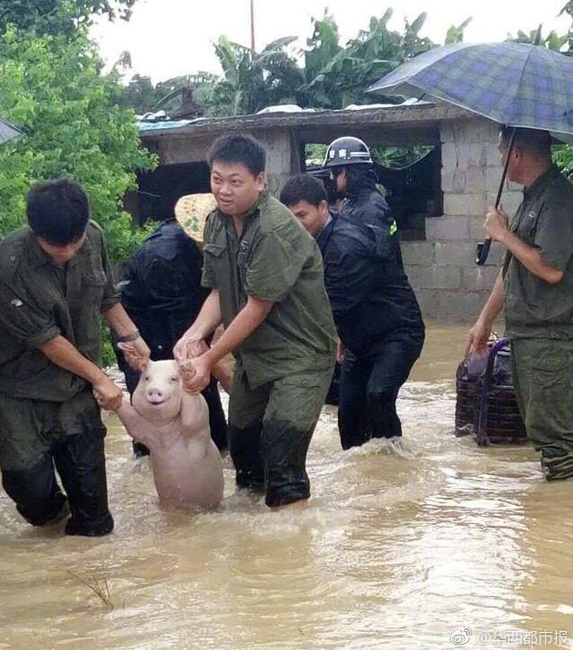 四川宜宾洪水来袭 二师兄微笑紧急撤离