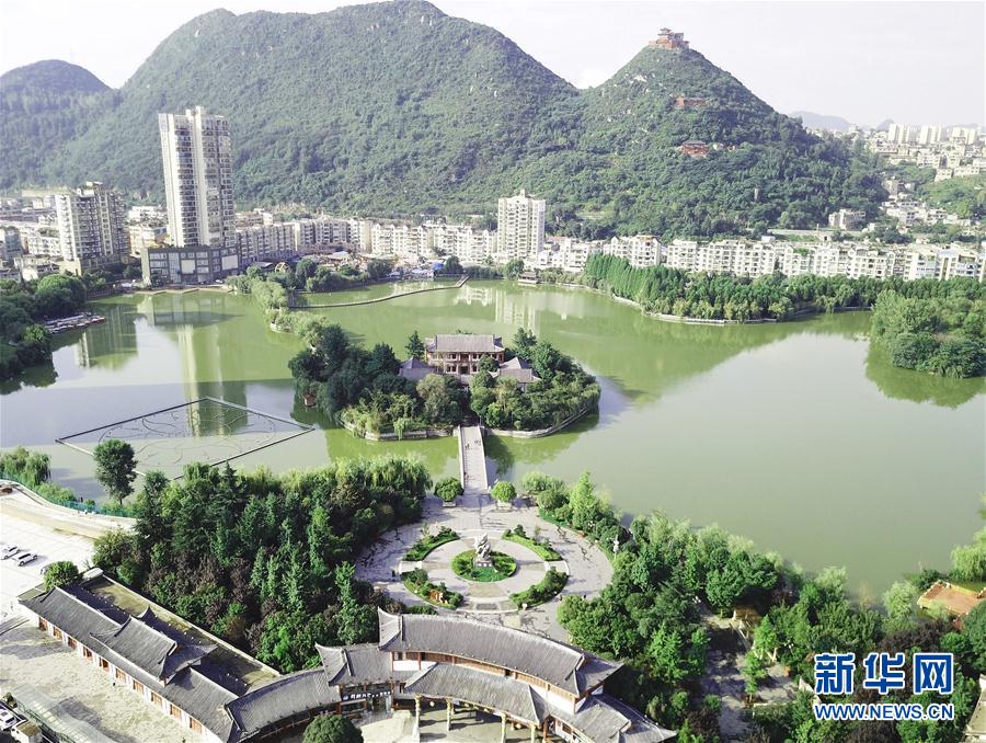 航拍六盘水市凤池公园(8月23日摄)。 近年来,素有“江南煤都”之称的贵州省六盘水市按照“黑变绿、冷变热”的资源利用理念,着力发展山地旅游、循环经济等产业,利用冷凉气候、高原山地等资源发展夏季避暑和冬季滑雪等项目,逐渐摆脱“一煤独大”的局面,初步探索出一条资源性城市“绿色转型”新路。截至2016年,六盘水市营造林面积336.59万亩,治理石漠化301.7平方公里,森林覆盖率达到53.94%。 新华社记者 陶亮 摄 点击查看专题