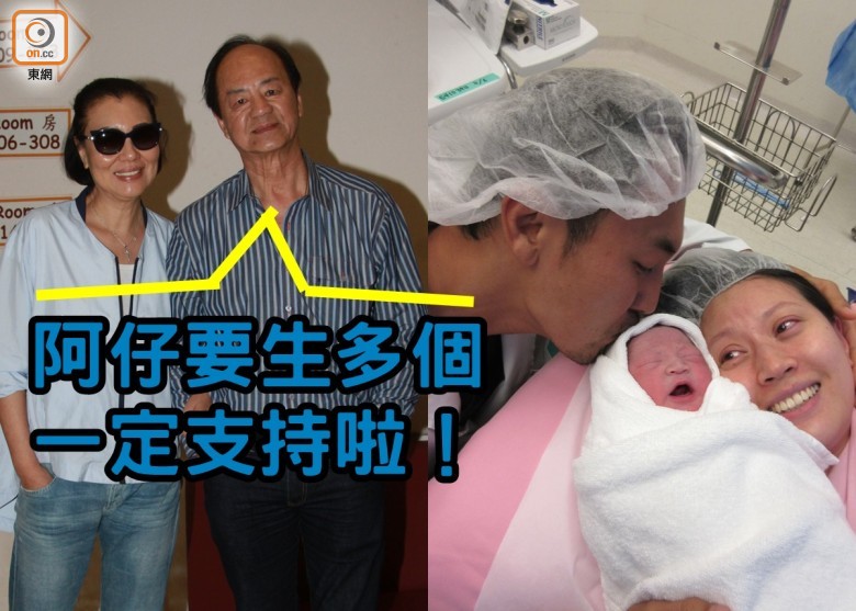再次抱孙的狄龙与太太陶敏明,26日到医院探望新抱与孙仔谭心,狄龙难掩兴奋心情说:“好开心呀!都七磅九,很好啦,太胖也不行!”讲到儿子有意生第三胎,狄龙笑说:“我一定会支持,我都有五个兄弟姊妹。”