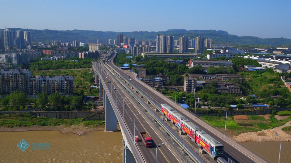 一般来说,梁桥没有其它桥型的桥梁吸引人,因为线条没有斜拉、悬索等塔式桥梁丰富而有起伏,重庆鱼洞长江大桥却是个例外。一般来说,公铁或公轨两用桥梁公采用上下两层的桥型,鱼洞长江大桥又是个例外。双线城市轻轨轨道在大桥中间,两侧是车道。(桥梁建设报 马永红 湖北日报全媒体记者 陈勇 赵融 摄)