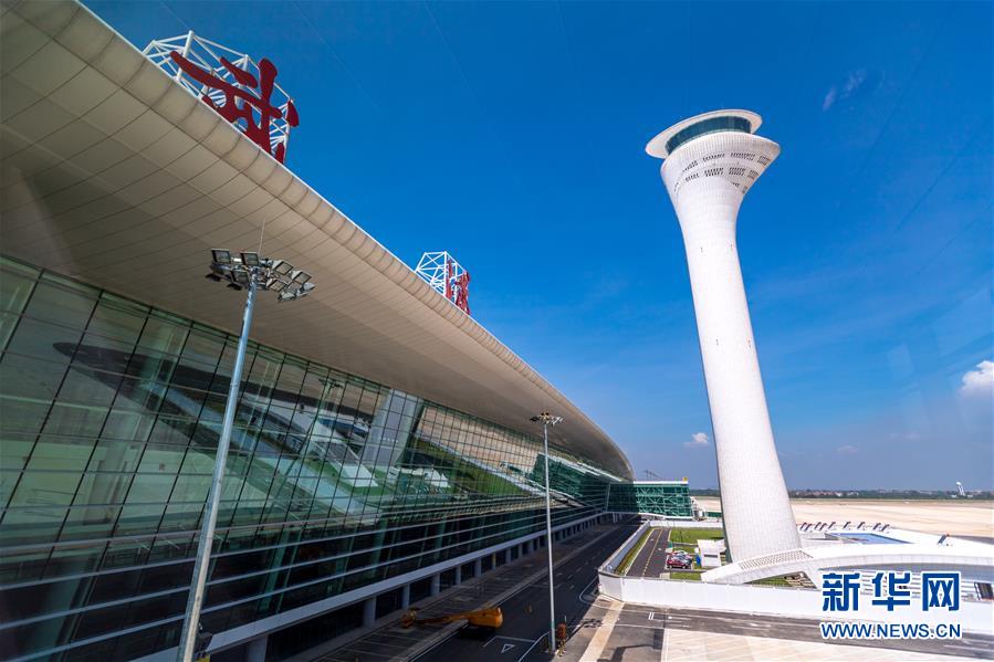 武汉天河机场T3航站楼和塔台(8月28日摄)。武汉天河机场T3航站楼将于8月31日6时正式启用。届时,机场T1和T2航站楼的所有航班将转入T3航站楼运行。天河机场T3航站楼在旅客候乘登机区域内共设有登机廊桥61部,数量是目前T2的三倍,旅客因此不用乘坐摆渡车,可直接登机。航站楼采用国际航班到港和离港旅客垂直分流和集中候机的方式,将实现国际、国内旅客在候机区内的直接中转,并为国际中转且需在T3长时间停留的旅客提供淋浴房、休息区及用餐等服务。此外,引入武汉市i_wuhan无线网络系统,实现免费网络全覆盖。新华社记者 熊琦 摄