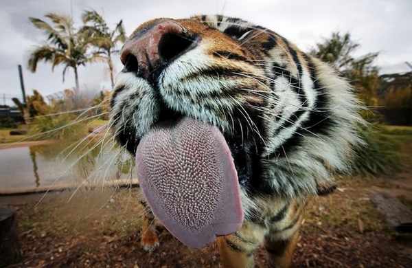 据英国《镜报》8月27日报道,近日,澳大利亚悉尼一家野生动物园里的一只老虎因为太享受午餐了,餐后还不忘伸出长长的舌头舔舐玻璃墙,似是在回味刚才品尝到的美味,十分有趣。图文:环球网