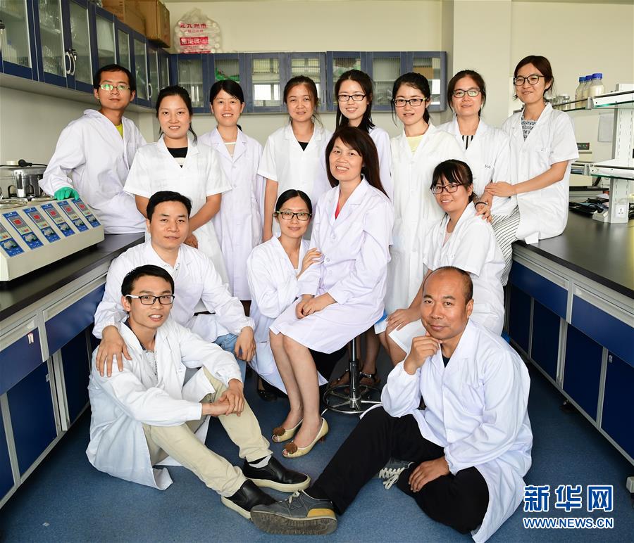 这是范代娣和她的研究团队(8月16日摄)。 范代娣是西北大学化工学院博士生导师,多年从事类人胶原蛋白系列生物材料研究,取得显著成果,通过基因工程技术生产人源型胶原,突破了人源型胶原类材料生产的瓶颈。范代娣还以“一种类人胶原蛋白及其生产方法”发明专利技术入股,组建了生物基因技术公司,实现了类人胶原蛋白的量产,并出口到美国、俄罗斯等国家和地区。如今,范代娣仍然很“拼”。她的学生们说,只要不出差,范老师准在实验室里“泡着”。范代娣说:“做研究有了困难要勇于迎难而上,唯有持之以恒,方能取得成功。” 新华社记者 邵瑞 摄