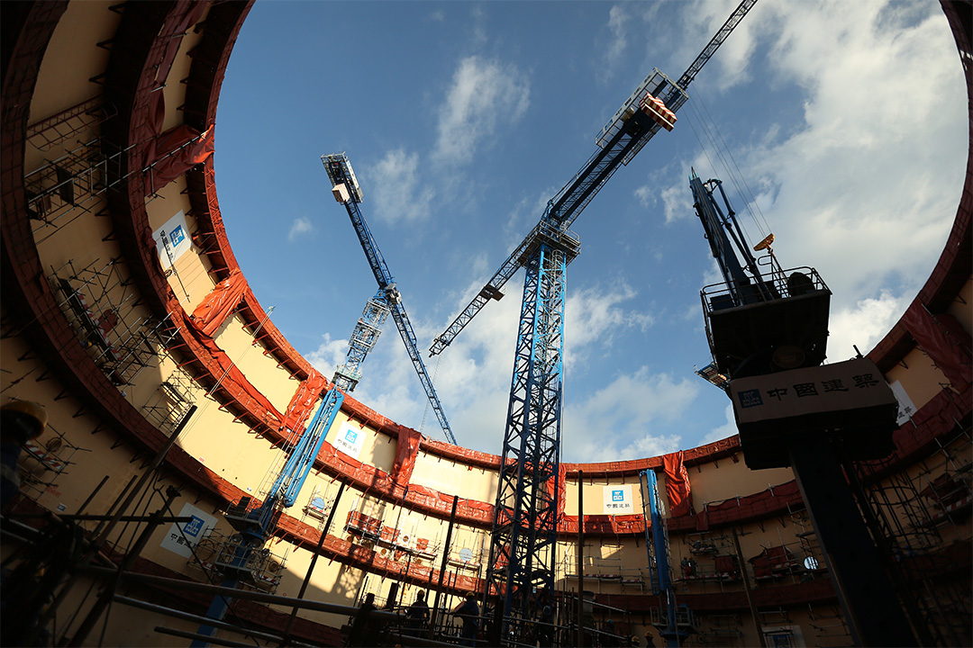 第一财经记者日前赴广西探访了正在建设的防城港核电二期工程。华龙一号是中国自主研发的世界第三代核电技术,由中核集团推出的ACP1000核电技术和中广核推出ACPR1000+核电技术融合而成的,是担纲中国核电技术“走出去”的“国家名片”。防城港二期是中国在建的华龙一号示范机组之一,而且将作为中广核控股的英国布拉德韦尔B核电项目参考电站。图为3号核岛就像一个巨大的天井矗立在防城港的一角。