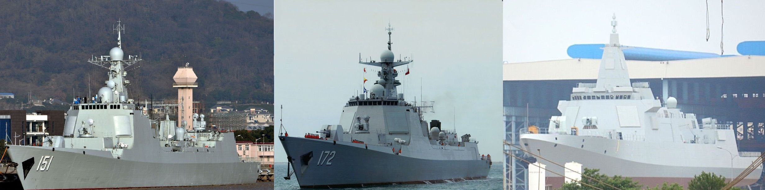 052C是中国第一款装备相控阵雷达阵列的导弹驱逐舰,目前发展到055型,中国已经拥有三代相控阵雷达阵列导弹驱逐舰。