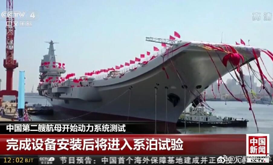 国产航母研制总指挥在接受央视采访时表示,中国第二艘航母开始动力系统测试,进度有所提前。