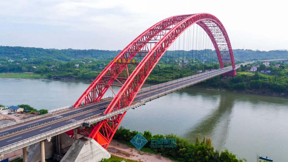 这座漂亮的红色拱桥叫波司登大桥,桥名比桥本身还吸人眼球。(桥梁建设报 马永红 湖北日报全媒体记者 陈勇 赵融 摄)